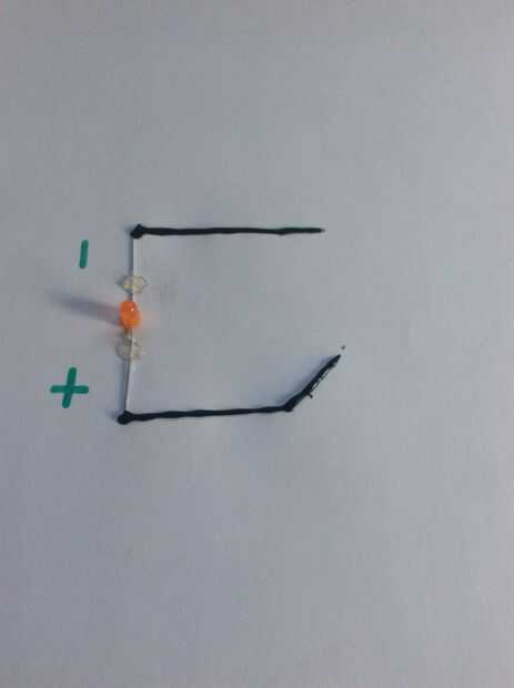 Ahora viene la parte fueron llegar a dibujar el circuito, hacer todo lo que necesitas hacer es pintar sobre el resto del circuito asegurándose de que la pintura toca ambos conduce pero no traslaparse. Traer los dos senderos de pintura cerca uno del otro (aproximadamente 4 a 5 cm de separación). Eligió a un lado de la batería está bien, pero sólo asegúrese de que coloque la batería por el lado positivo hacia arriba en el positivo y negativo del cable negativo. Ahora con la batería en espere que se seque.