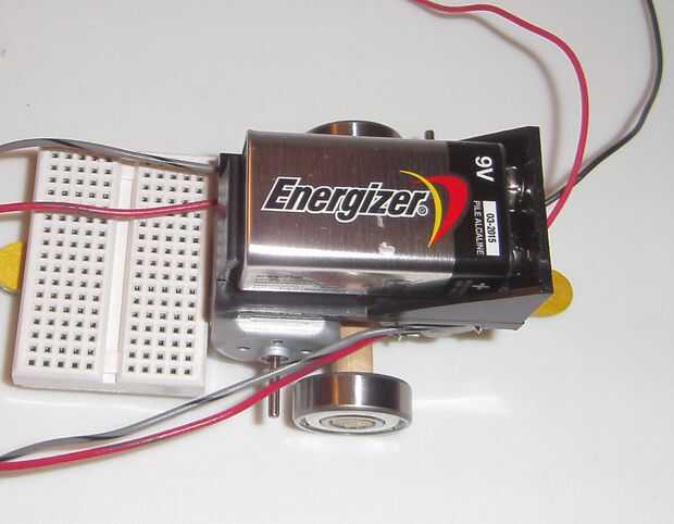 La parte delantera del soporte de la batería debe ser sobre incluso con el borde delantero del motor delantero. Usted quiere estar seguro que del borde delantero del soporte de la batería no interfiere con el acceso a la placa. Sin embargo, no ponga la batería demasiado hacia atrás, o puede poner demasiado peso en la espalda y y la parte delantera de la SpurtBot para levantar.