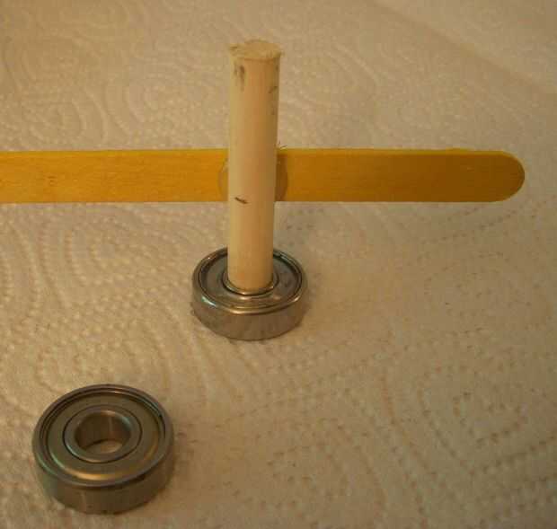 Ahora repita el proceso con el otro rodamiento, para que tengas uno en cada lado de la espiga. Mientras se inserta el segundo cojinete, asegúrese de presionar en la parte superior de la espiga, en lugar de en los bordes del primer rodamiento, o podría viento con el pasador insertado demasiado lejos en el primer cojinete.