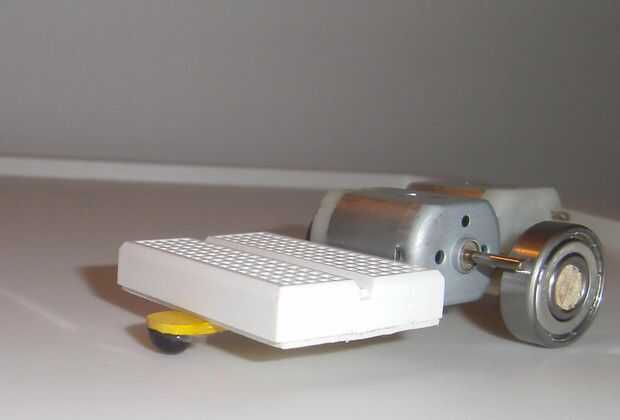 Voltee su SpurtBot hacia atrás por lo que es el lado superior hacia arriba. Asegúrese de que el equilibrio es para que el bot ahora descansa en el talón de la media en la parte delantera del robot.