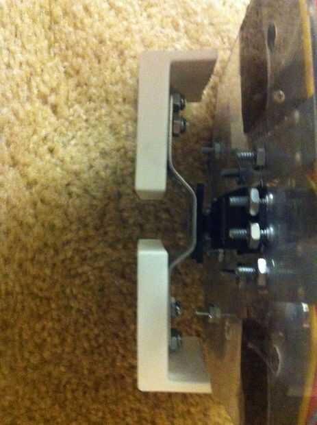 Primero necesitas attch el soporte para el motor servo con el tornillo que viene con el servo. Luego usar pegamento para unir dos soportes persiana de ventana más a las patas del soporte de V. éstos funcionarán como la rotación de la base para el robot.