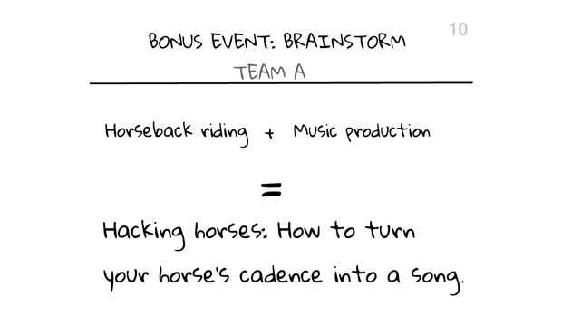 Ahora les pregunto a los equipos a tomar una breve cantidad de tiempo para colaborar y llegar a una nueva idea para un proyecto, taller u otro creativo evento de espacio de aprendizaje basado en sus dos temas.