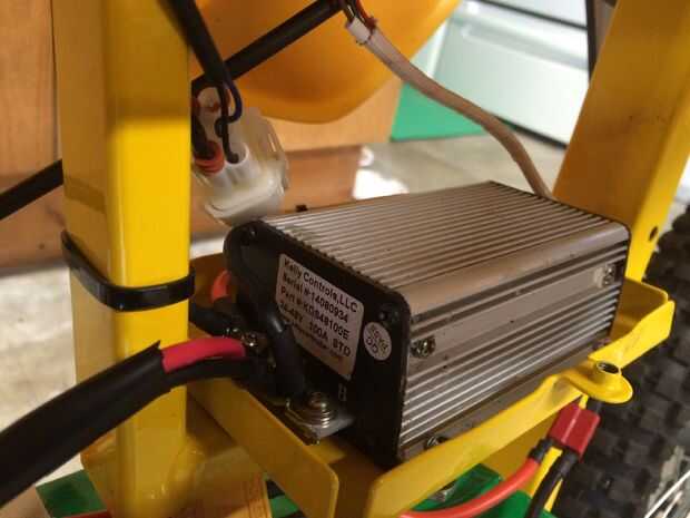 Después de mucha investigación en línea, he encontrado que es prácticamente sólo una marca que le dará un buen controlador pequeños que cabe en la moto y viene en una multitud de salidas de voltios y amperios. Eligió pone hacia fuera un máximo de 100 con un continuo de 50A nominal y tensión nominal máxima de 48V (60V pico entrada). Se pueden encontrar en Kelly Controller en "mini regulador de la C.C."