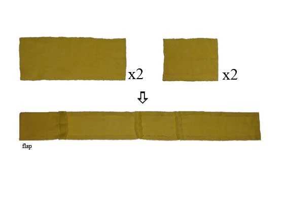 Para la solapa ocultar la entrada empotrada salida doble el pedazo de tela, palangana y cosido es bordes y luego lo cosió en la tira (según la foto) que cubra los laterales. Me dio la vuelta y presiona los bordes laterales de la tira.