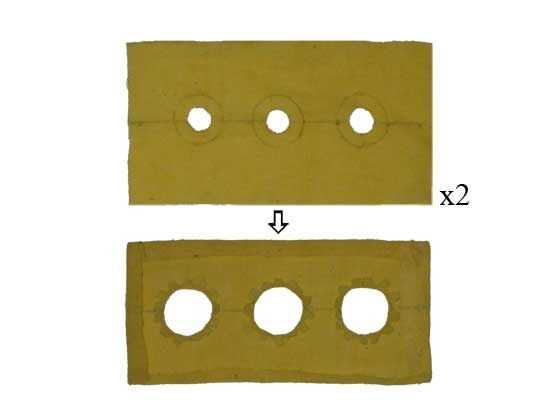 me dio la vuelta y presionar los bordes de la parte superior y panel inferior cubre. Picado cortes en el margen de costura de los agujeros y luego presiona pack los bordes según la foto.