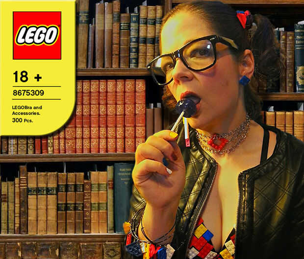 Un año atrás, mi esposa (fotografiada arriba) vino a mí y dijo "Quiero que me hacen un LEGObra." - y me reí. Todos me pude imaginar era algo cónico que Madonna habría usado en 1987 - básicamente un par de pirámides de paso plástico brillantemente coloreado.
