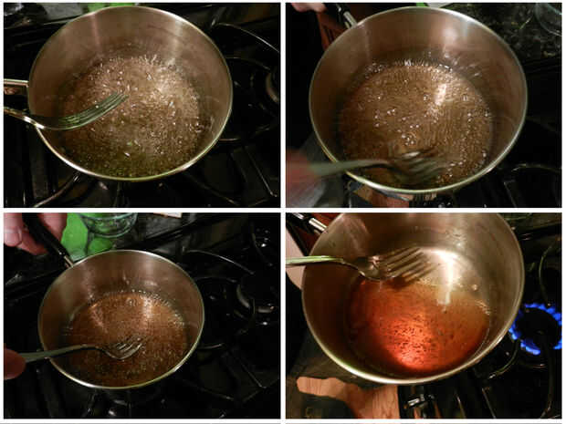 Nota - aquí de un Consejo para fácil caramelo sin quemar. Constantemente mantener un ojo en la mezcla de caramelo. Retire la sartén del calor igual que empiece a dorarse. El fondo de la cacerola se retienen el calor y continuar la cocción del caramelo. Si usted necesita un poco mas marrones, siempre se puede volver al calor. Asegúrese de remover el fondo de la olla, así como el resto del caramelo, o se quemará, y tendrás que empezar de nuevo.