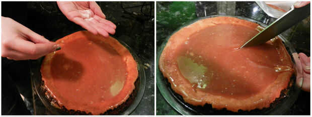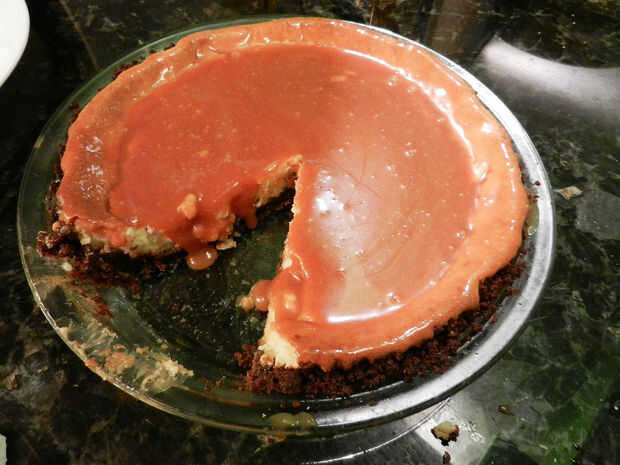 Verter el caramelo enfriado sobre el pastel enfriado, luego regresar al refrigerador hasta que esté listo para servir. Espolvorear con una pizca de sal marina y luego rebanar y servir.