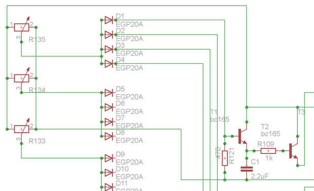 la razón para el diodo es dejar varias líneas de LED encendido cuando se supone que no.