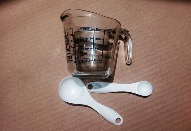 Frotar aceite de oliva en tazas o cucharas de medición