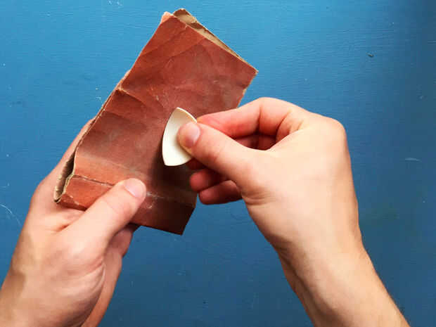 Lije suavemente la tapa para quitar los bordes ásperos. Hacerlo ahora porque va a ser difícil después de que se han soldado en la cuchara.