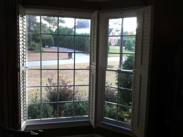 En mi caso, tengo esta gran ventana al frente. Técnicamente, hay una tercera ventana a la izquierda de estos dos, pero más o menos está obstruido por un árbol en el otro lado, por lo que te acabo de dejar las persianas en lugar de aquél.