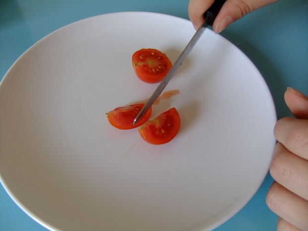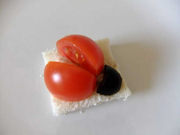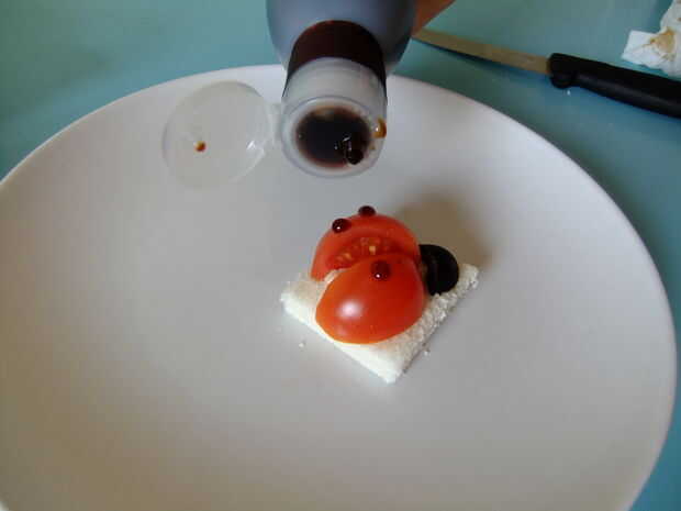3. Dibujar los puntos negros en las alas con la crema de vinagre balsámico;