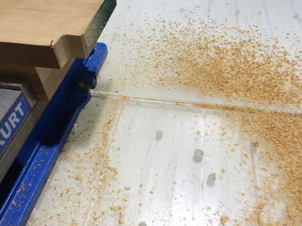 Nota: en la foto no estaba usando un taladro punto a punta exacta superior junto a la esquina izquierda de mi pieza de trabajo tal y como se cubrió como el UCS en el modelo. Asegúrese de que la pieza esté orientada correctamente en X y Y antes de empezar!