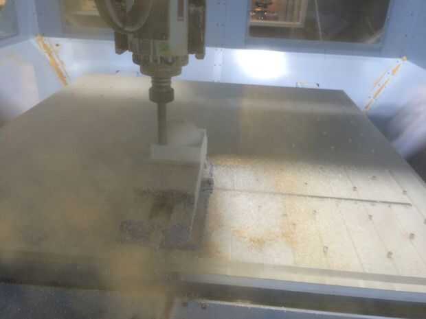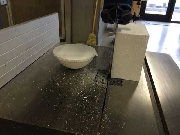 Con el fin de reducir charla mientras trabajé en el otro lado de las manos, opté por un relleno de espuma de poliestireno para la esfera en las manos de la máquina. Porque fue muy fácil para que coincida con la forma y modelo, fue una elección fácil para incluir el apoyo extra. Utiliza una adaptación y un contorno y luego cortar en la Sierra de cinta.