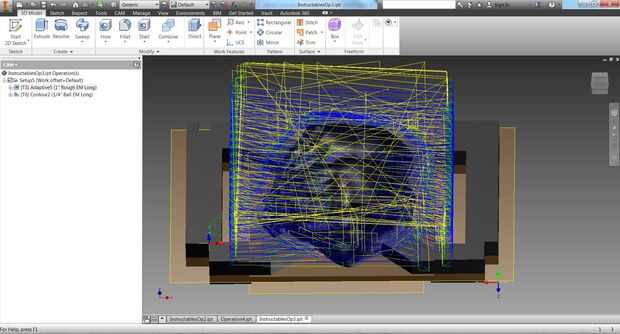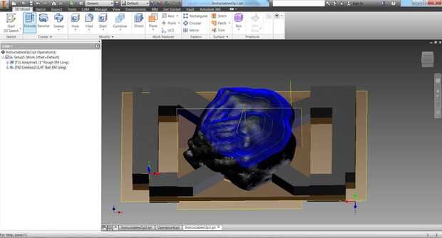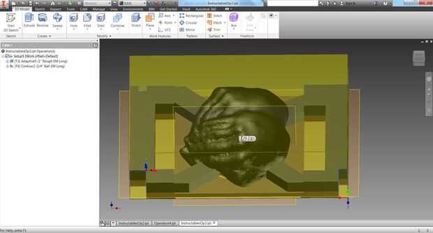 Ahora que mi trabajo es fixtured y mi modelo es reorientar, estoy listo para utilizar HSM para preparar las trayectorias de herramienta para el lado volteado de trabajo.
