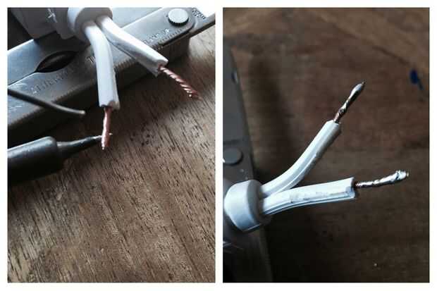 Cortar la extensión eléctrica, y "estañar" los cables como se ve en la foto.