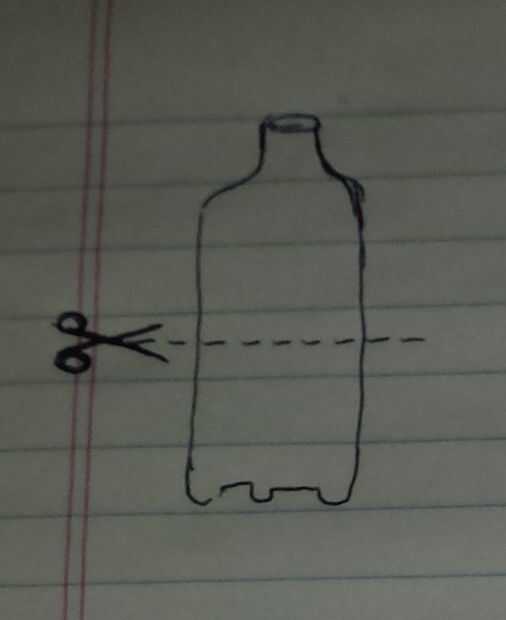 Corte las botellas un poco sobre el punto medio. Tenga cuidado y no hacen daño a sí mismo.