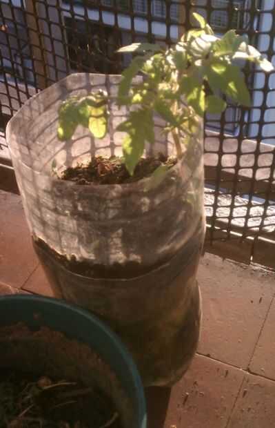 Hay botellas de refresco de 24 2 L que cada uno Sostenga una planta individual. Nutrientes se bombea desde el depósito inferior a la parte superior por 1/2" tubería y reducir en 1/4" tubería va en cada uno de los mejores ocho 2 L botellas de ref