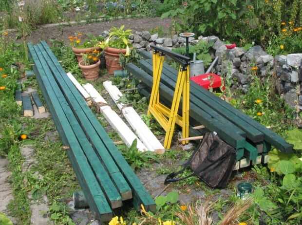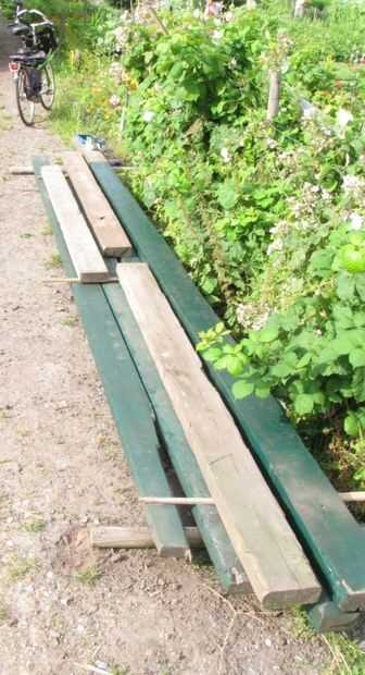 Madera: Un montón de grandes tableros (vigas), cerca de 16 x 6 cm (6 + x 2 + pulgadas). Muchos sobre 2 m, pero algunos sobre un dulce 5m!!! (aprender métrica! - 6 + 16 pies). Tuvo que ser cortado (largo) en 2! Se encontraron muchos tableros más pequeños, según sea necesario. A veces, casi parecía les ordenó: en cualquier momento necesitaba un cierto tamaño, una cierta cantidad, un contenedor de basura demostró para arriba, con sólo la madera apropiada necesaria!