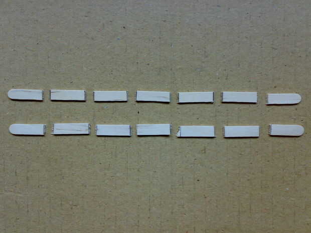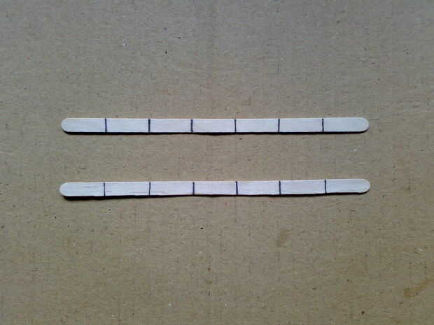 • Pick 2 agitadores • Usando regla y marcador pluma/lápiz, cada uno del agitador dividir en 7 partes iguales [aprox. 2cms] • Utilizando la herramienta de corte, corte las piezas 7 marcada de los agitadores de 2