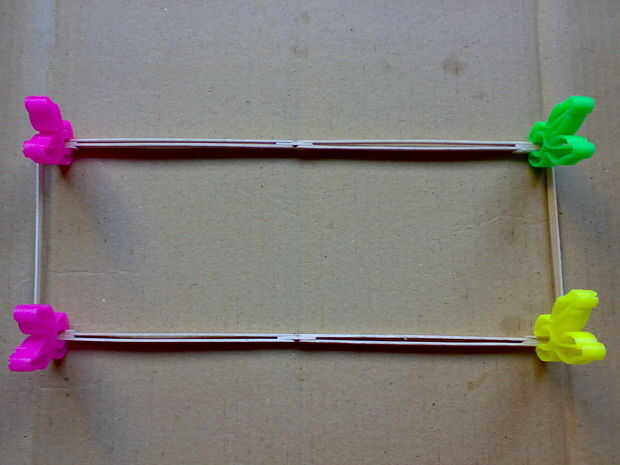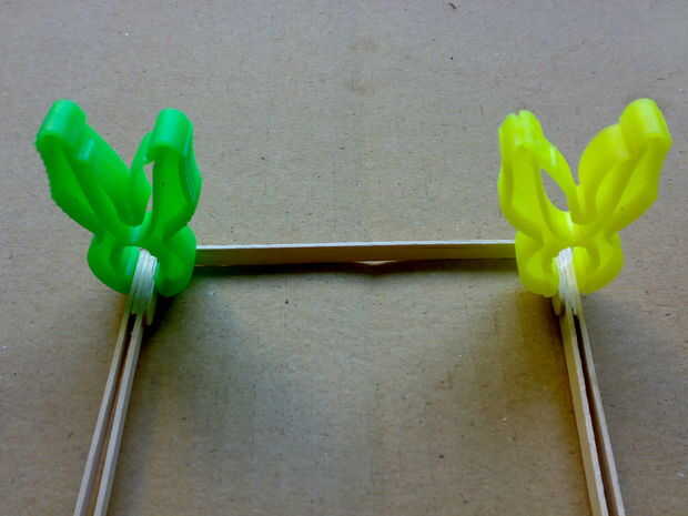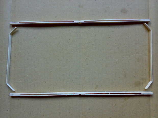 • Pegar con cuidado el soporte a ambos los largueros de un lado. Utilice sus dedos o pinzas de cocina para celebrar juntos la Asamblea y deje que se seque. Repetir este proceso para el otro soporte al otro lado de los largueros del pegamento
