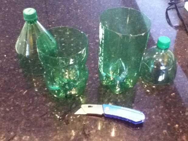Esto también es bastante autoexplicativo. Al cortar las botellas, utilicé el cuchillo para uso general. Averiguar cuánta profundidad que desee para el suelo antes de cortar.
