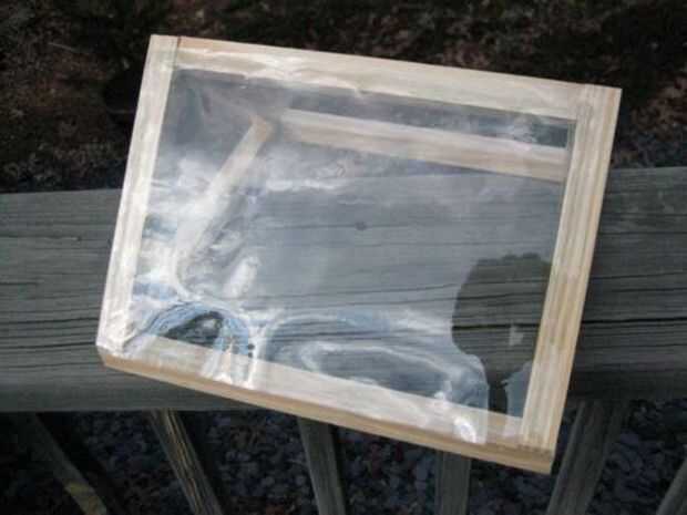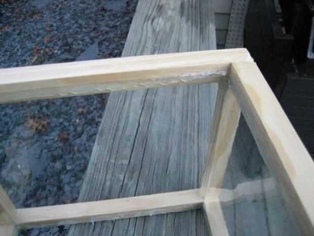 Mi idea original era básico el vinilo hacia abajo en el interior del marco, pero eso no funciona. Pino amarillo del sur es un poco denso para tomar una grapa profundamente, y metiendo la cabeza de la pistola de grapas de las curvas cerradas no funcionaría. Así que fui a esa espera, HOTGLUE. Me encanta hotglue. Pegamento por la parte superior y puse firmemente hacia la parte inferior y luego péguelo allí. En realidad no toca en todos los lados, sólo las aletas libres.