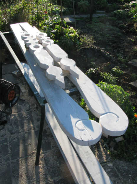 Un problema mal fue la arena a la deriva alrededor de la parte inferior de la estructura: mejor primero terminar todo, al final primero limpia todo bajar piezas (todo arena de cepillo) y luego rápidamente pintar todas las piezas inferiores restantes. Algunas placas temporales colocan contra el otro lado de los base prevenidos vientos soplando y depositar arena aún más!!!!!!