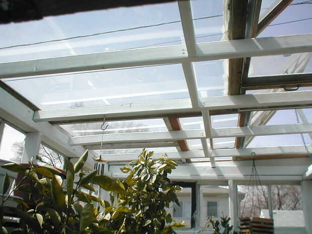 Por último, creo que en el futuro, yo totalmente reconstruirá el techo, utilizando las ventanas de una estructura de tipo aguilón. Obliga a utilizar a algún tipo de material de polietileno para cubrir los extremos del aguilón. El tono actual de la azotea no es suficiente a la cuesta de agua fuera de las ventanas completamente.