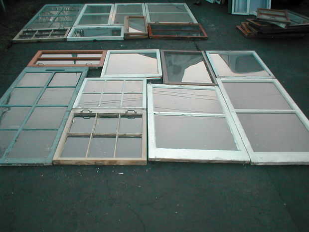 Look para windows viejo y guardar cada uno llegar. Después de tener muchos, pone hacia fuera y jugar un partido tratando de hacer a dos pares de "paredes" ambos la misma altura. Dos a tres pulgadas no importa como usted puede cubrir la diferencia con la madera. Agujeros más pequeños tendrá que tener vidrio cortado para ellos o lleno de algo más. Tenga en cuenta que una final tendrá una puerta y el otro un agujero para un ventilador.