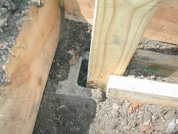 Para evitar ciertos problemas con permisos de construcción de la ciudad molesta, construí la altura del galpón de estructura y no vierta el concreto de la Fundación. Enterré en su lugar bloques de cemento para estabilizar los postes esquineros de 4 x 4. Mantenga de una pulgada en movimiento.