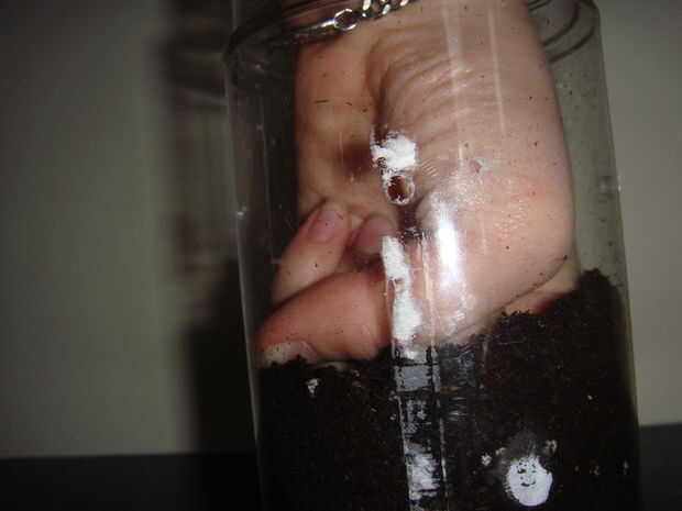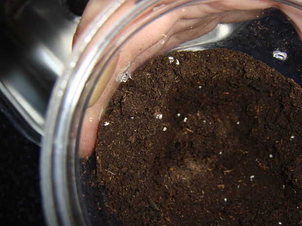 A continuación sólo añadir suelo en su frasco y asegúrese de que no cubra los orificios de aire. Después de agregado el suelo a una profundidad razonable paquete abajo para que sea firme y luego cavar un agujero para su planta.
