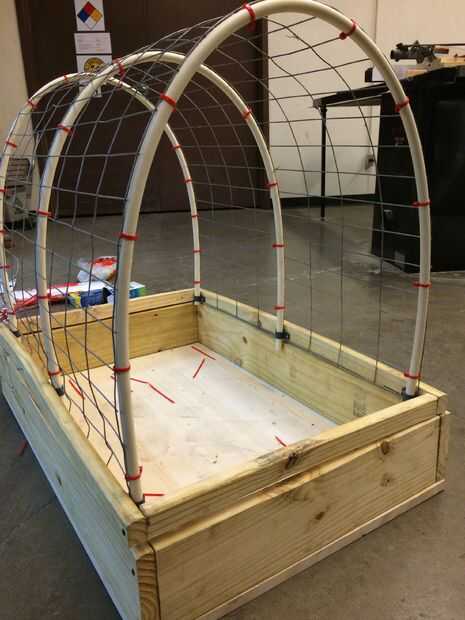 La estructura base del invernadero fue construida en madera de LOWE y utilicé tubo de pvc flexible y el alambre de pollo para crear la campana de Marcos. (Foto 1)