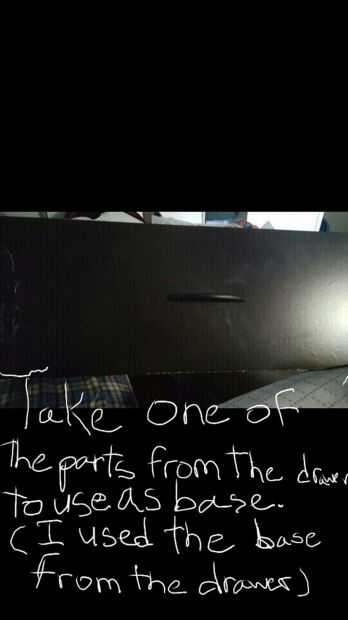 Primero quité todos los cajones de la cómoda. Luego sacó una de las tablas (parte para usar como base) desde el cajón. Después de salí de la pista del cajón en allí así que cuando le pongo la plancha puede quedarse allí. Para permanecer en el lugar hay puse pegamento caliente en la pista, luego coloque la plancha en. Ahora sirve como base. Para ello, a todos los cajones. Así que usted básicamente convertir esto en una estantería. Ahora siga los procedimientos del paso dos para completar el efecto invernadero.