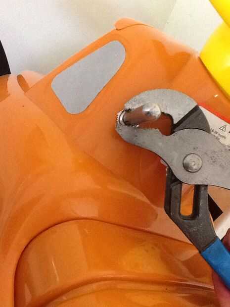 El agujero que perforó no era absolutamente tan grande como la parte más gorda de la palanca. Fui alrededor de la palanca un par de veces con una piedra en una herramienta Dremel hasta la extensión sobre la palanca.