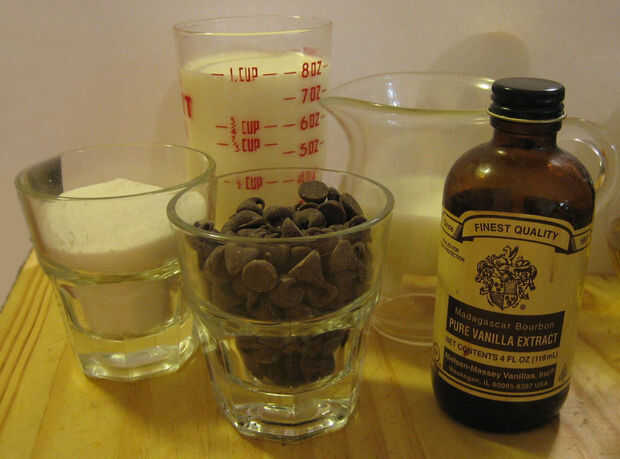 - 3 onzas de chocolate semidulce u oscuro, picadas gruesas