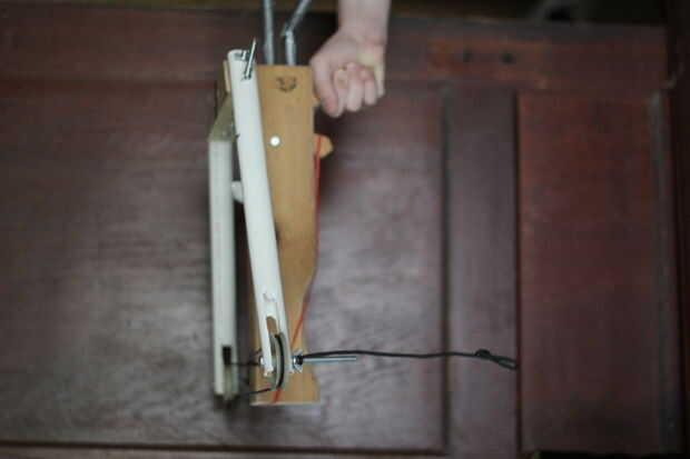 El mecanismo de la rueda hace de aplanados y pegados juntos plank(trigger) de madera de PVC(wheel) y 3/4".