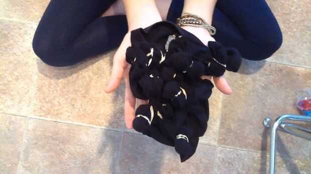 • Había dividido en diez secciones y había torcido la banda de caucho alrededor de unas seis veces. Puede dividirlas en secciones más que son más pequeñas para crear un patrón más complejo.