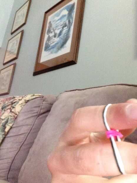 Hola: voy a hacer cola de pescado en los dedosPaso 1: lo que necesita un montón de bandas de goma y clip de s o cPaso 2: Qué hacer colocar una banda de goma (trenzado o infinity firmar 8) a su índice y medioPaso 3: Coloque 2 bandas más no torcidosPas