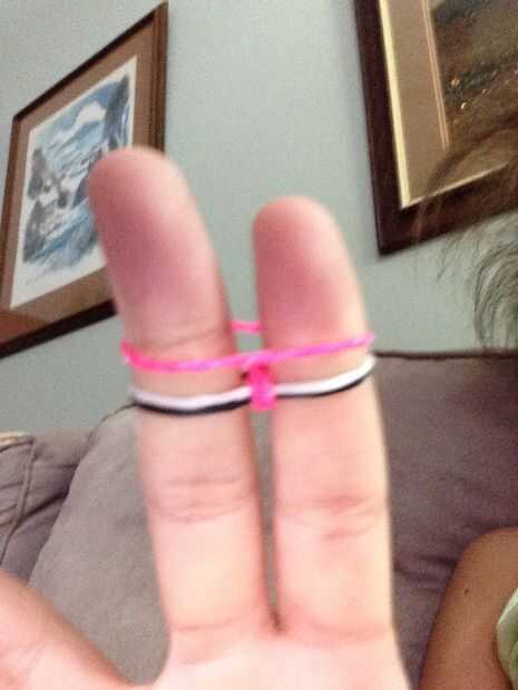 Hola: voy a hacer cola de pescado en los dedosPaso 1: lo que necesita un montón de bandas de goma y clip de s o cPaso 2: Qué hacer colocar una banda de goma (trenzado o infinity firmar 8) a su índice y medioPaso 3: Coloque 2 bandas más no torcidosPas