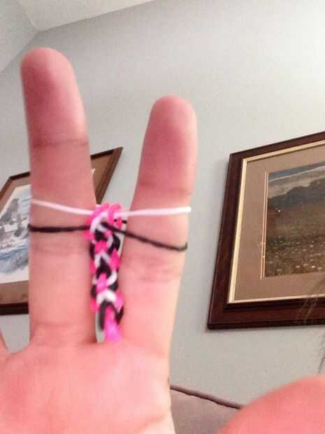 Hola: voy a hacer cola de pescado en los dedosPaso 1: lo que necesita un montón de bandas de goma y clip de s o cPaso 2: Qué hacer colocar una banda de goma (trenzado o infinity firmar 8) a su índice y medioPaso 3: Coloque 2 bandas más no torcidosPas