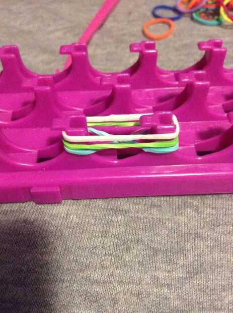Gobierno-Gobierno es tu pulsera debe como cuando listo.Paso 1: Lo que usted necesitaUsted necesita un telar, bandas y un gancho.Paso 2: Empezando Hacer una figura de 8 con una banda y ponerlo en las 2 clavijas. Entonces puso dos bandas más en eso. po