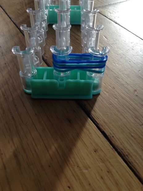 se necesita: un telar del arco iris, bandas de goma, un gancho y S ' clip o clip de 'c'Paso 1: Colocación de las bandas Hacer una figura 8 y dos bandas más sobre él.Paso 2: tejer Tire la segunda banda a un lado de la figura 8 entonces llevar al otro