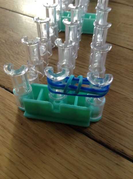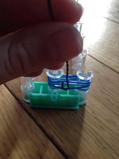 se necesita: un telar del arco iris, bandas de goma, un gancho y S ' clip o clip de 'c'Paso 1: Colocación de las bandas Hacer una figura 8 y dos bandas más sobre él.Paso 2: tejer Tire la segunda banda a un lado de la figura 8 entonces llevar al otro