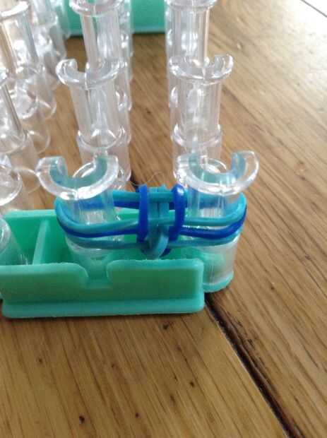 se necesita: un telar del arco iris, bandas de goma, un gancho y S ' clip o clip de 'c'Paso 1: Colocación de las bandas Hacer una figura 8 y dos bandas más sobre él.Paso 2: tejer Tire la segunda banda a un lado de la figura 8 entonces llevar al otro