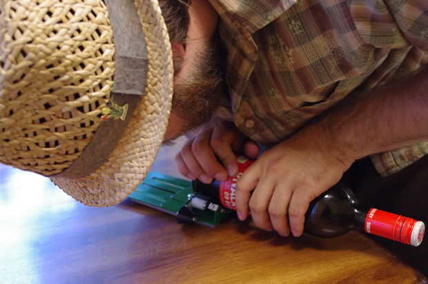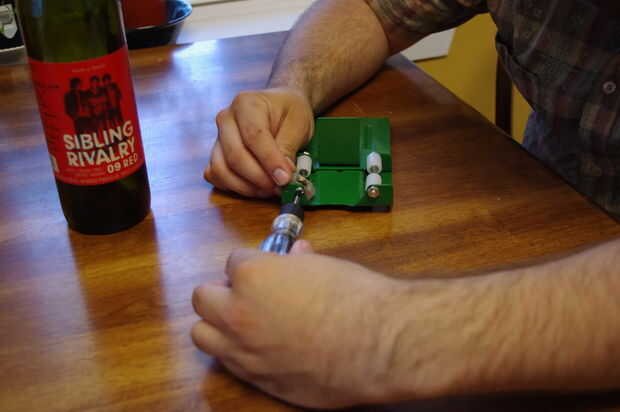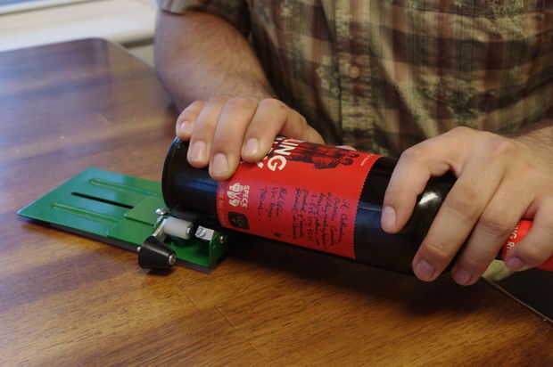 Para cortar la botella que primero debe anotarlo. Para ello necesita ajustar su cortador de botella en la posición derecha para cortar tan poco o tanto de la parte inferior de la botella de vino apagado como usted desea. Una vez que estés feliz con donde se hará la puntuación y tienes la botella en su jarra de corte que necesita girar la botella en la máquina mientras se aplica presión constante a la botella con el fin de hacer una puntuación continua (debe poder escuchar el cristal que anotó). Tienes que probar y hacer todo en una línea continua, girando la botella hacia adelante y hacia atrás tiende a marcar diferentes zonas, haciendo la botella más propensa a la fisuración (que podría dar un efecto fresco si es lo que vas, pero tiendo a como las roturas limpias yo). Si usted escucha debe ser capaz de oír un clic débil una vez que llegue al punto donde comenzaste el marcador, momento en el que desea dejar de... Una rotación es todo lo que necesitas. Recuerde, usted es no cortar el vidrio con este dispositivo, está anotando sólo lo.