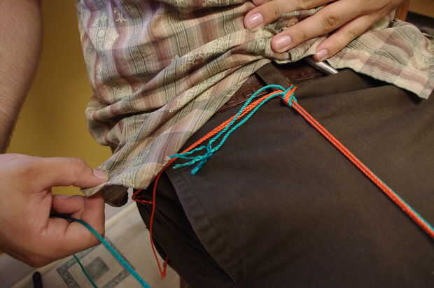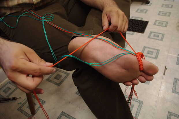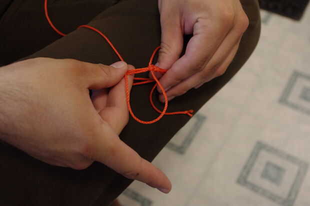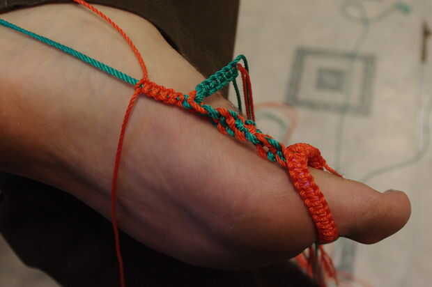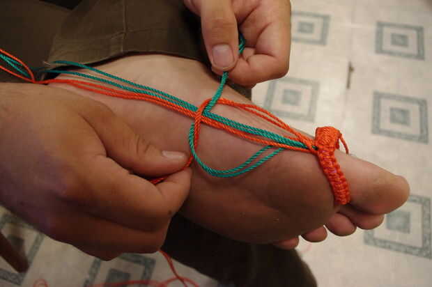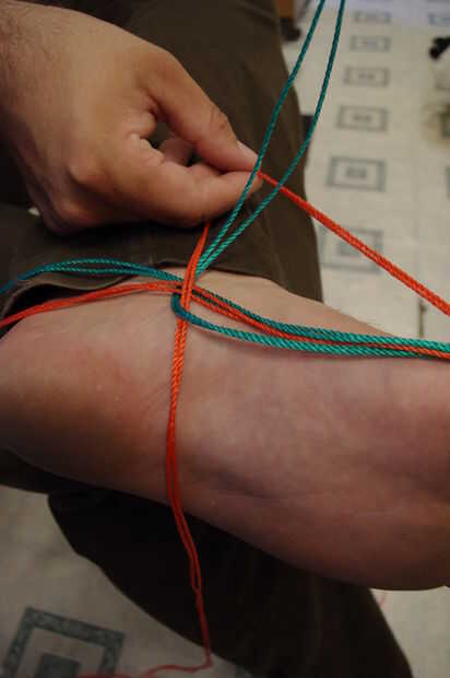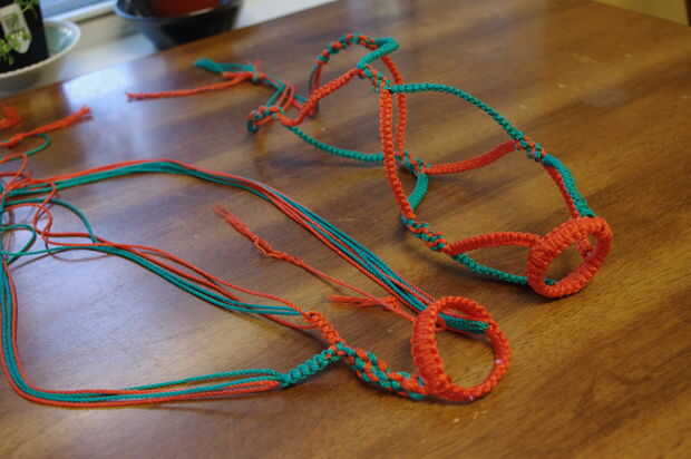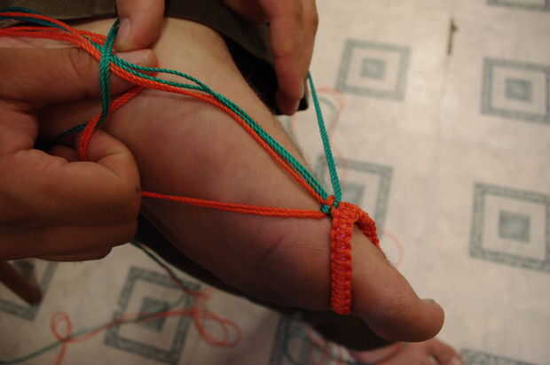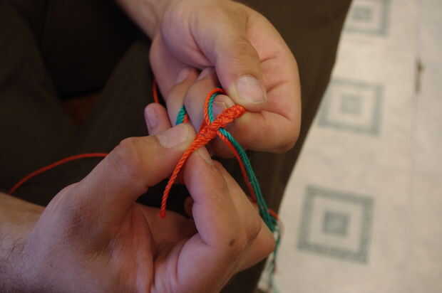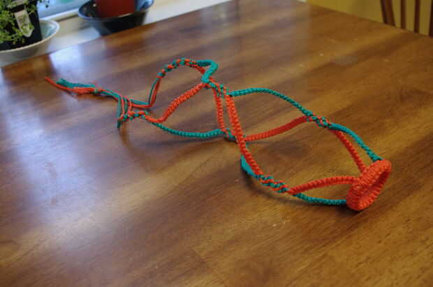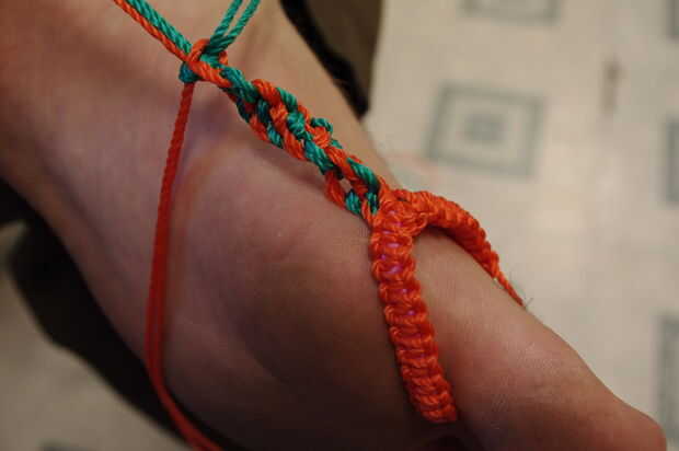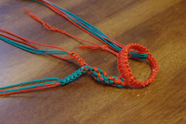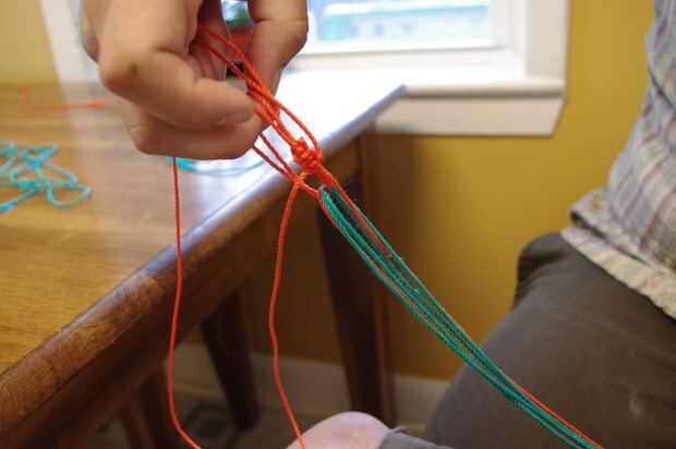 Este tejido de cáñamo pulsera es difícil de explicar sin fotos, así que si alguna vez fuiste a los cuadros de referencia sería un buen momento para él... Pero básicamente usted tendrá un mínimo de 3 cuerdas (generalmente usar dos y pliegan para hacer 4) dos en el exterior y el resto en el centro (las más cuerdas por el medio el más grueso será el resultado final). Una cadena y un 4 en la parte superior de la cuerda media. Luego tomar la otra cadena y pasar la cola de los 4. Entonces traer la cadena bajo la Cruz de los 4 y tire hacia arriba a través del medio. Una vez más, esto suena muy confuso, pero es bastante sencillo una vez que vea las fotos... Fue una favorito del campo de la artes detrás cuando yo era un consejero, así que si usted no puede averiguar ir a ver si sus hijos son mejores para comprender mi mente saturada del cuidado de niño.