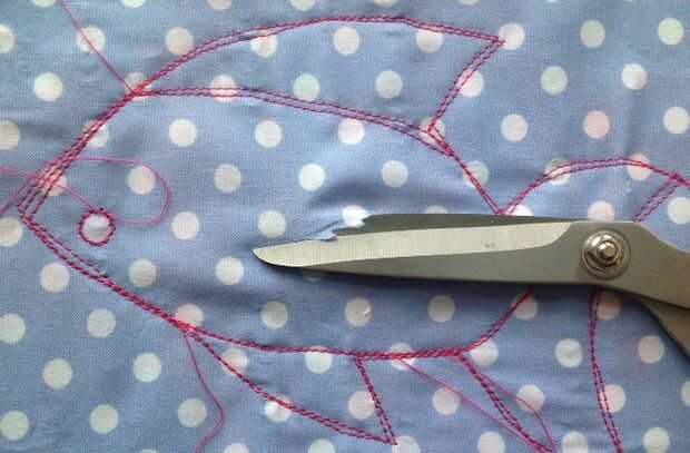 Es donde cose a capas de tejido que luego se corta la capa superior para mostrar lo que está por debajo de.