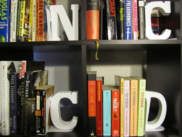 Porque la biblioteca se utiliza sobre todo como telón de fondo para foto ops *, pensé que podía alegrar con un conjunto de delimitadores blanco Consejo de ortografía. Repartidas en cuatro estantes, estos se destacan sin ser excesivamente llamativo. Tenue pero evidente. Como un estornudo ahogado que podría tener lugar mientras que cavar a través de propuestas mecanografiada presentadas durante la administración Carter. El blanco debe ser lo suficientemente brillante para llamar la atención sobre los estantes y, quién sabe, tal vez alguien estará lo suficientemente convencido para recoger un volumen para una finalidad distinta elevar a su monitor a un nivel adecuado ergonómicamente.